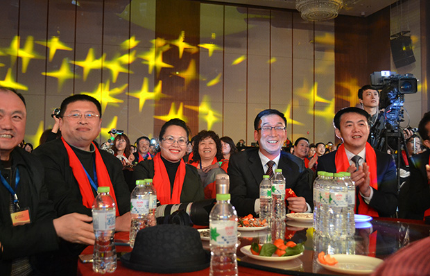 公司領(lǐng)導(dǎo)與獲獎(jiǎng)代表合影 演出結(jié)束,全體人員共進(jìn)晚宴,大家舉杯同慶、開(kāi)懷暢飲,祝福聲、歡笑聲此起彼伏,無(wú)盡的喜悅溢于言表……。